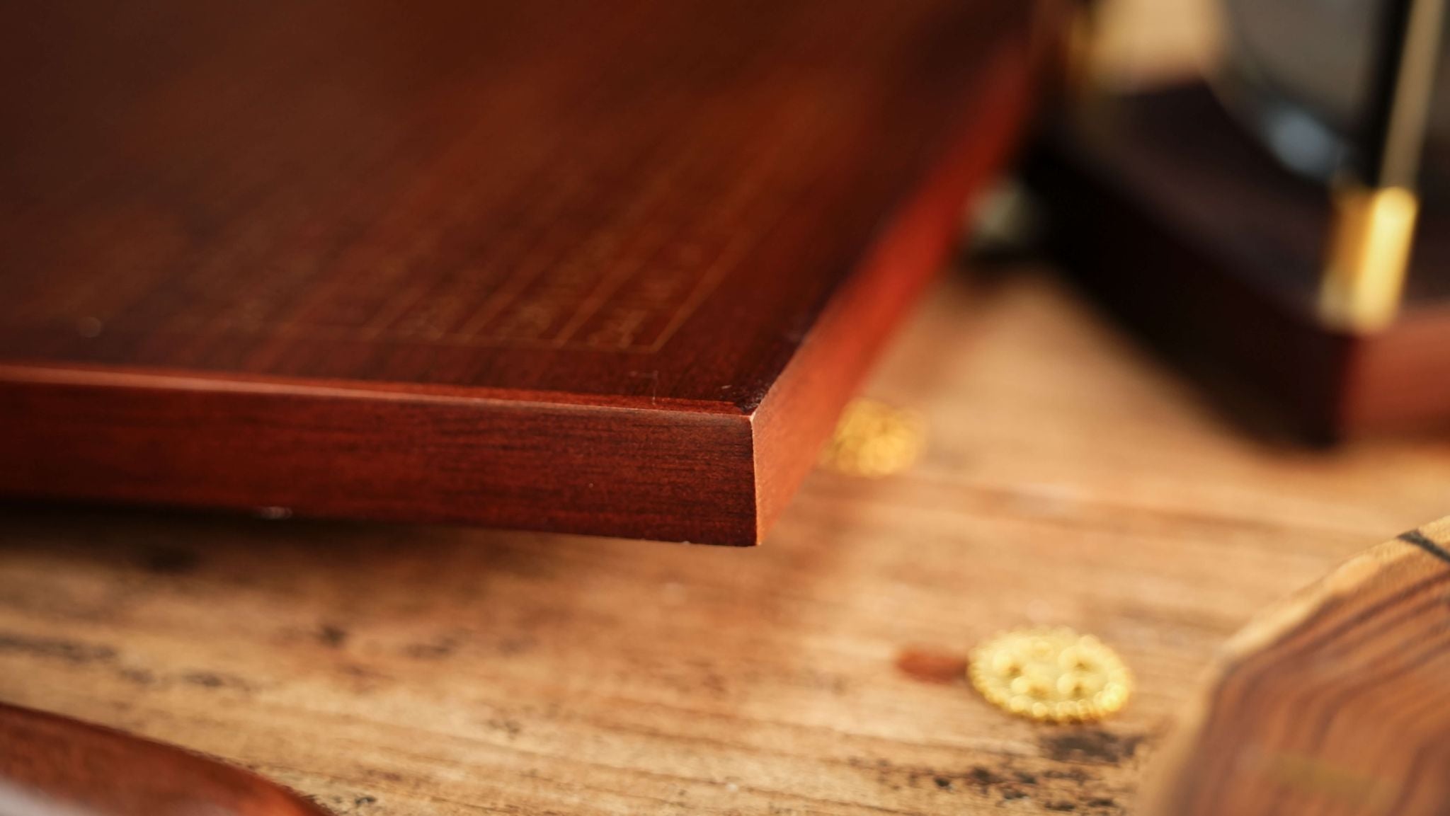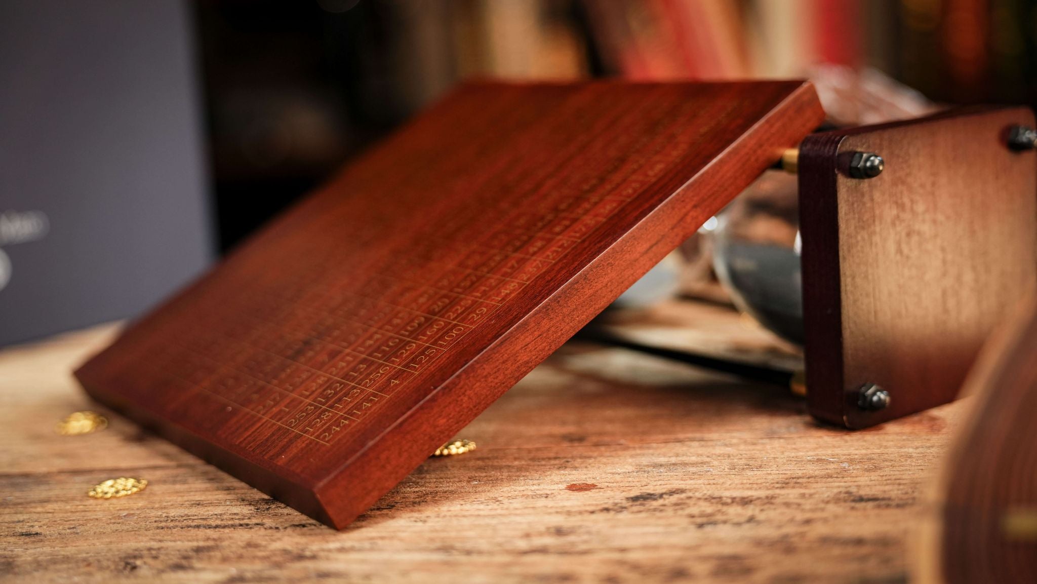 - Walnut board with gold-printed matrix