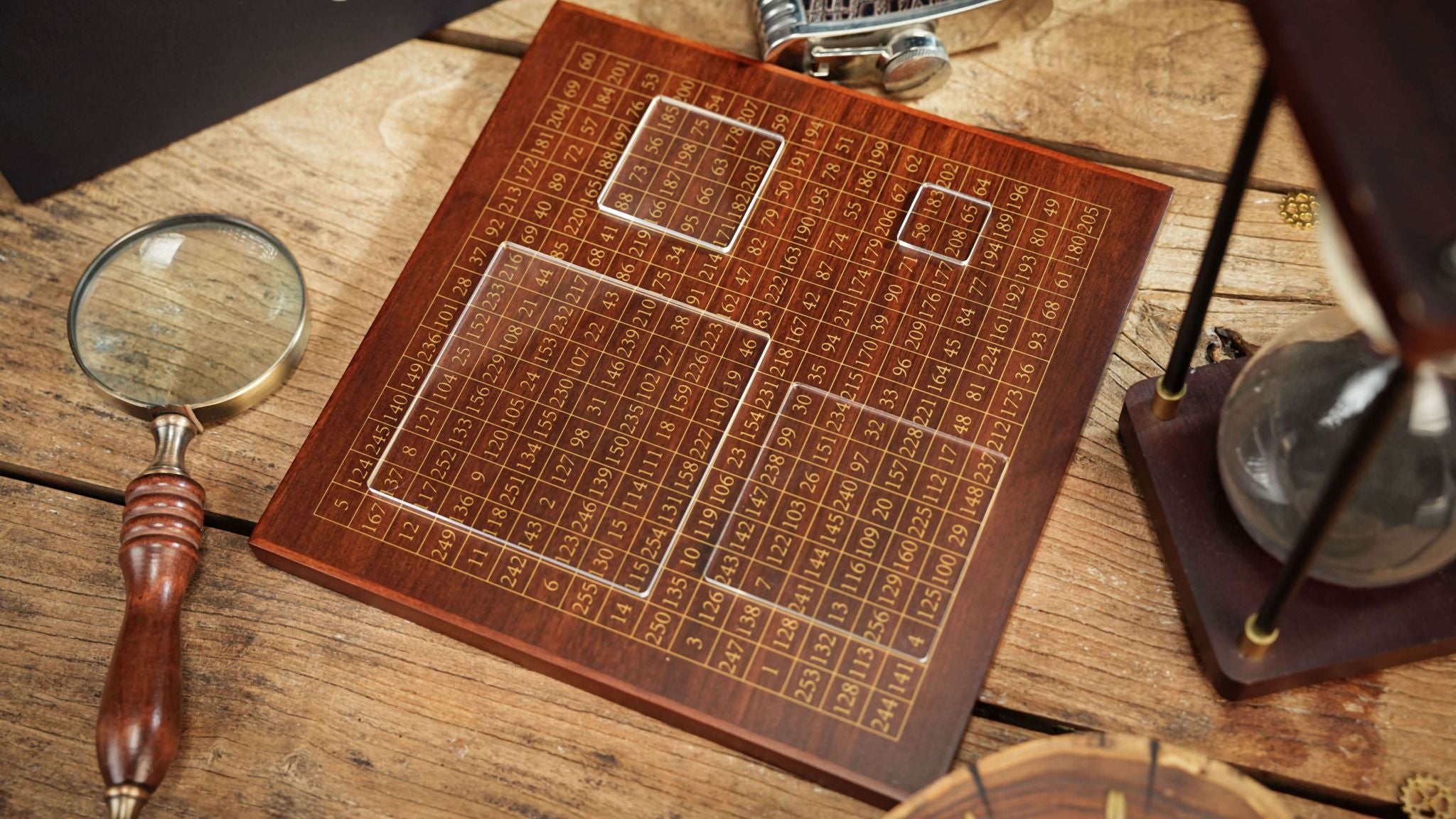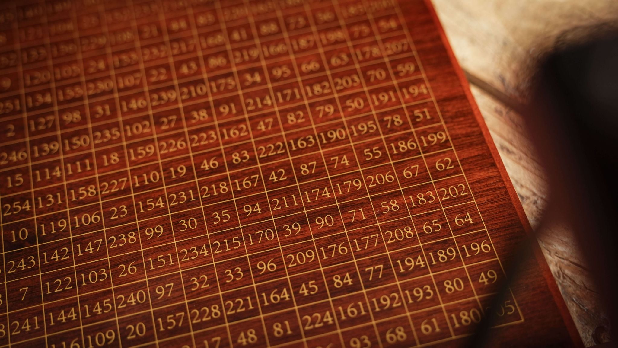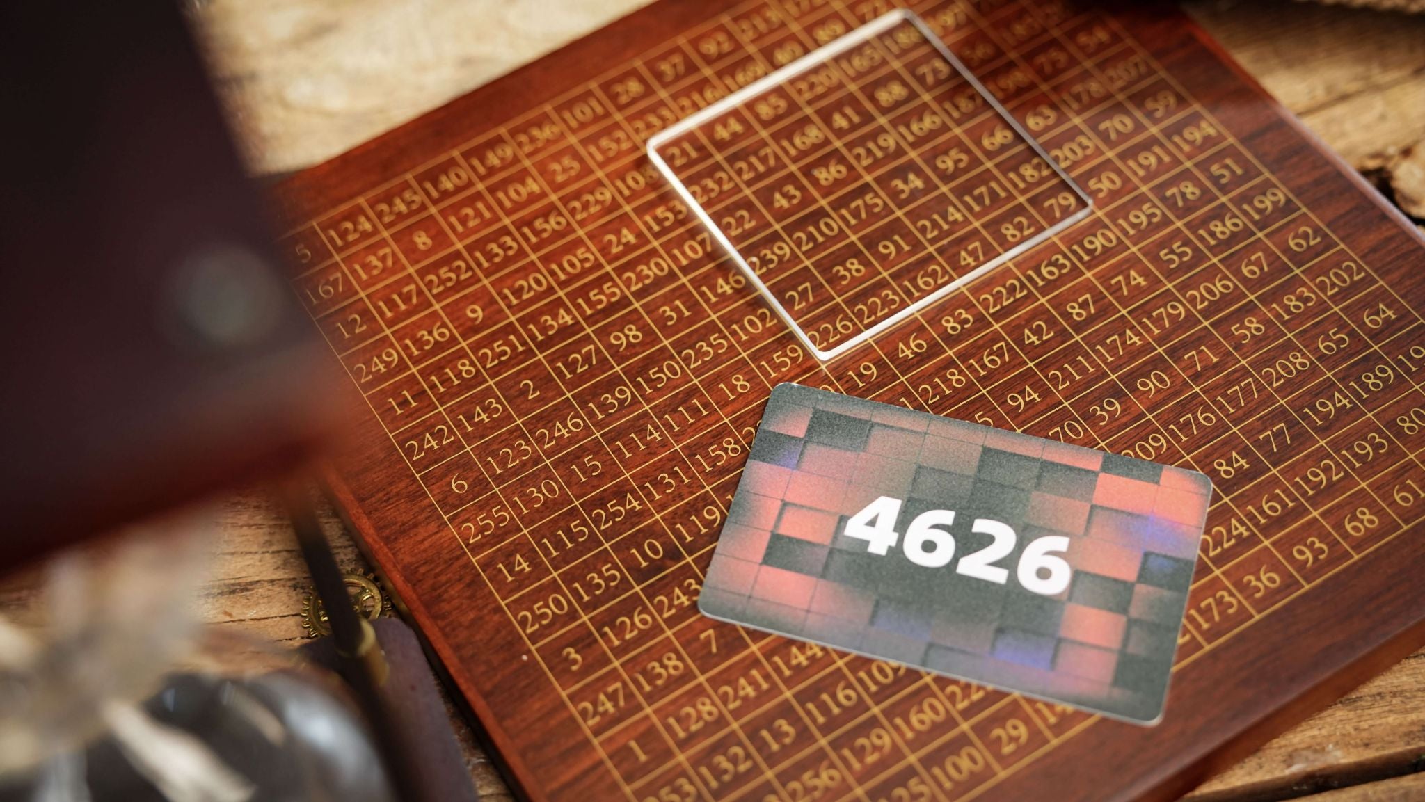 At the heart of the system is a walnut display board, inscribed with a 16×16 numerical matrix. 256 numbers that seem completely random.
